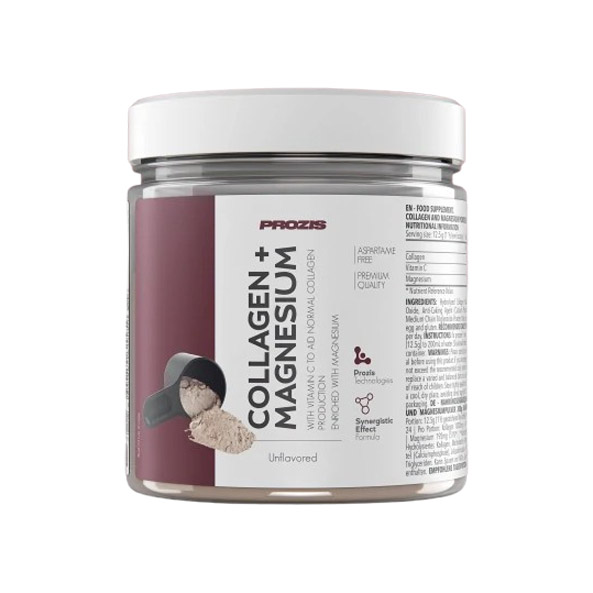 Prozis Collagen+ Magnesium is a premium supplement designed to support joint health, skin vitality, and overall well-being. This formula combines hydrolyzed collagen, known for promoting healthy skin, hair, and nails, with magnesium, essential for muscle function, bone health, and energy production.